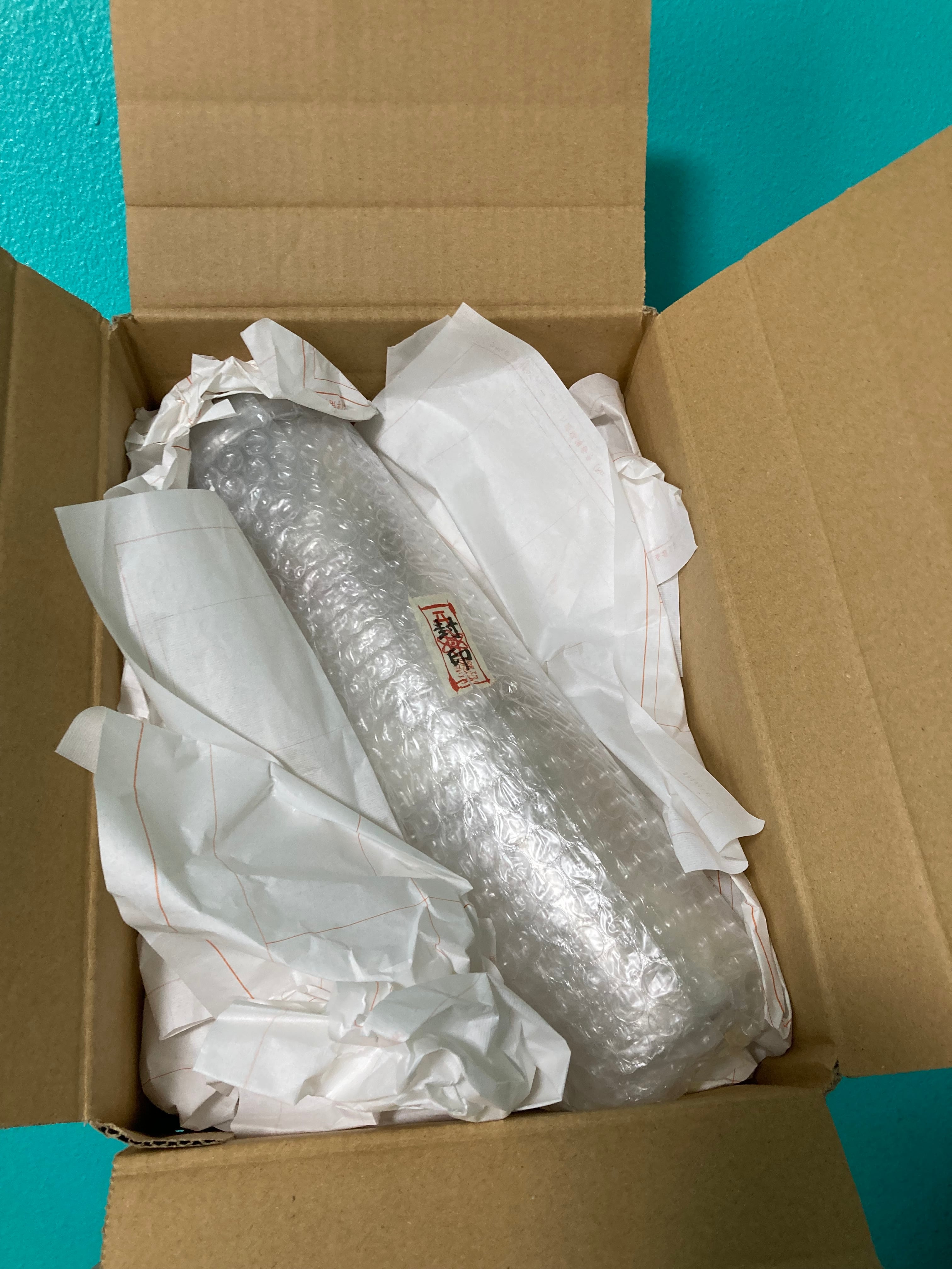 筒形の透明のケースに入れて発送します。梱包用のケースのため、発送中ケースに凹みや傷がつくこともあるため、ご理解のほどよろしくお願いいたします。